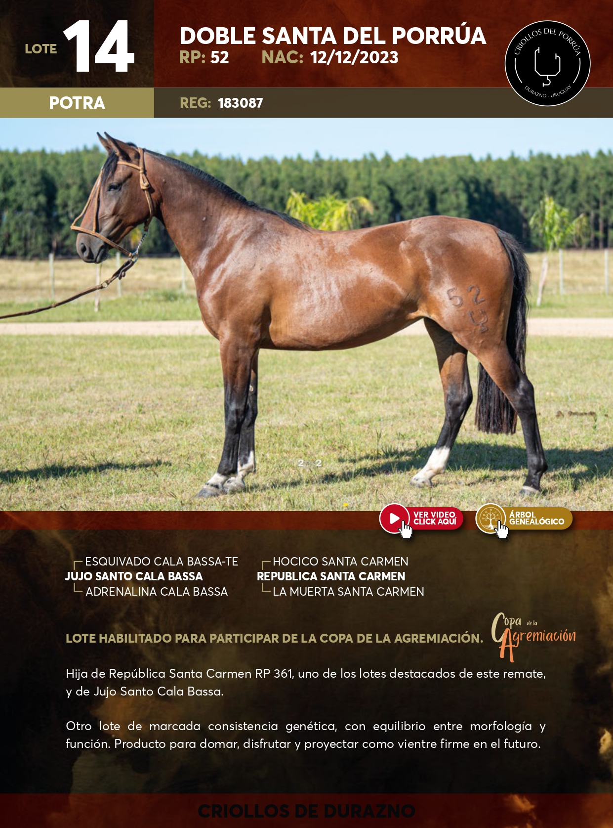 LOTE 14, DOBLE SANTA DEL PORRÚA Lote Anterior Volver al remate Lote Siguiente Ficha Contacto Ofertar Durazno - Ficha del Lote Identificador: #357726 Categoría: Potra RP: 52 Pedigree Plazo 18 cuotas Durazno - Ofertar Fecha de cierre: 28 de Febrero a las 19:00hs. Aún no tiene ofertas Plazo: Contado 30 días 45 días 60 días 90 días 120 días 180 días Contado, 30 y 60 dias Su Oferta en U$S: (por 18 cuotas) − + Step: -5,00 / +5,00 Programar puja hasta: Programar puja hasta Aumentar puja programada 80 170 Iniciar sesión para ofertar Ofertar Compra por U$S 99.000.000,00 Ofertas Recibidas U$S Fecha/Hora Estado Este lote aún no tiene preofertas. ¿Estás seguro de comprar el LOTE DOBLE SANTA DEL PORRÚA por 18 cuotas de U$S 99000000 ? 5 Visualizaciones ClicData Contacto Empresa: Juan Vera SRL Negocios Rurales Nombre*: Teléfono* : E-mail* : Mensaje Enviar