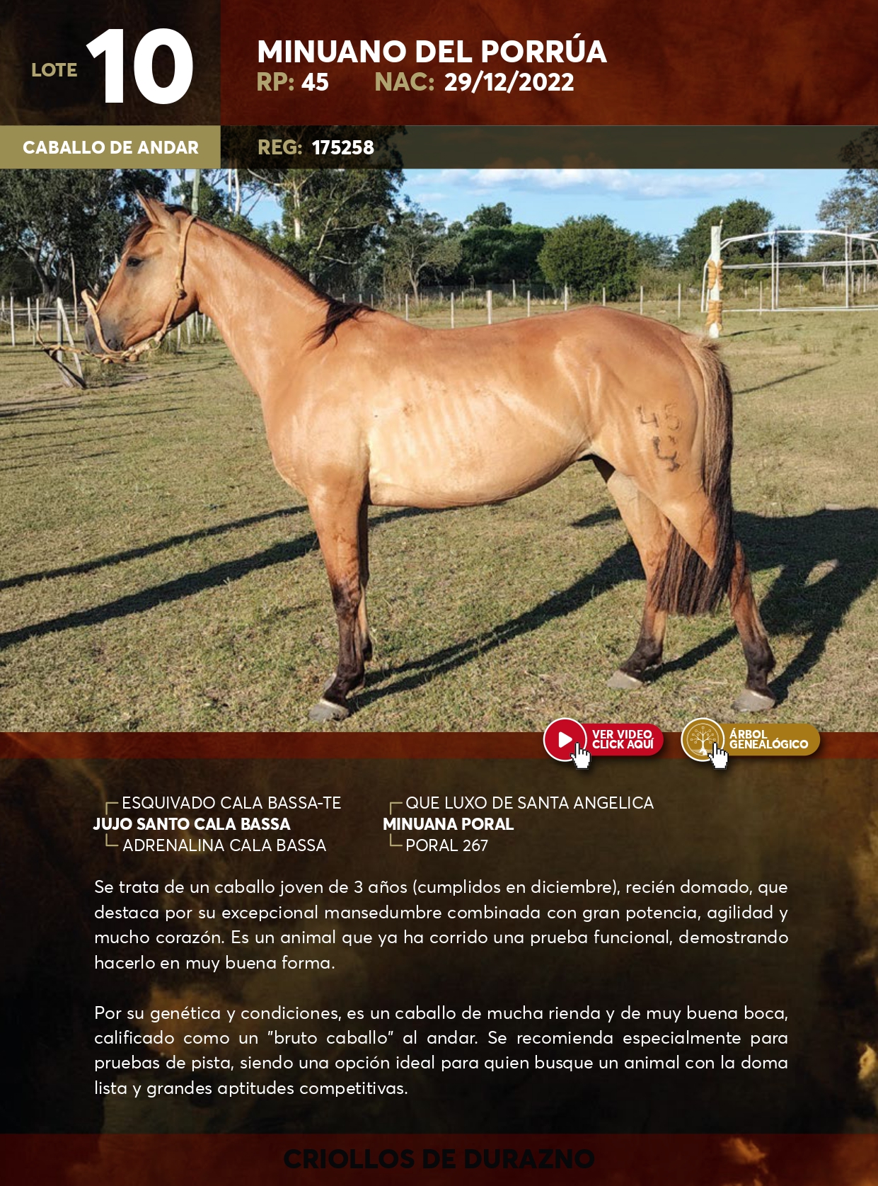 LOTE 10, MINUANO DEL PORRÚA Lote Anterior Volver al remate Lote Siguiente Ficha Contacto Ofertar Durazno - Ficha del Lote Identificador: #357729 Categoría: Macho castrado RP: 45 Pedigree Plazo 18 cuotas Durazno - Ofertar Fecha de cierre: 28 de Febrero a las 19:00hs. Aún no tiene ofertas Plazo: Contado 30 días 45 días 60 días 90 días 120 días 180 días Contado, 30 y 60 dias Su Oferta en U$S: (por 18 cuotas) − + Step: -5,00 / +5,00 Programar puja hasta: Programar puja hasta Aumentar puja programada 90 180 Iniciar sesión para ofertar Ofertar Compra por U$S 99.000.000,00 Ofertas Recibidas U$S Fecha/Hora Estado Este lote aún no tiene preofertas. ¿Estás seguro de comprar el LOTE MINUANO DEL PORRÚA por 18 cuotas de U$S 99000000 ? 4 Visualizaciones ClicData Contacto Empresa: Juan Vera SRL Negocios Rurales Nombre*: Teléfono* : E-mail* : Mensaje Enviar