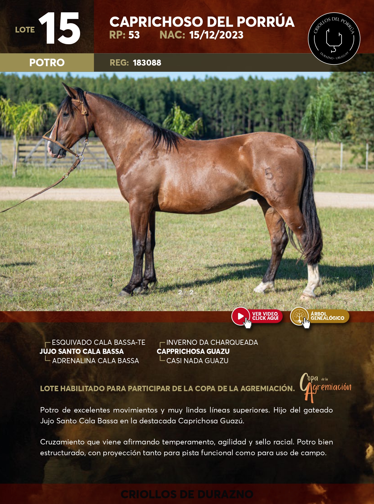 LOTE 15, CAPRICHOSO DEL PORRÚA 🔥 🔥 🔥 Lote Anterior Volver al remate Lote Siguiente Ficha Contacto Ofertar Durazno - Ficha del Lote Identificador: #357733 Categoría: Potro RP: 53 Pedigree Plazo 18 cuotas Durazno - Ofertar Fecha de cierre: 28 de Febrero a las 19:00hs. Aún no tiene ofertas Plazo: Contado 30 días 45 días 60 días 90 días 120 días 180 días Contado, 30 y 60 dias Su Oferta en U$S: (por 18 cuotas) − + Step: -5,00 / +5,00 Programar puja hasta: Programar puja hasta Aumentar puja programada 60 150 Iniciar sesión para ofertar Ofertar Compra por U$S 99.000.000,00 Ofertas Recibidas U$S Fecha/Hora Estado Este lote aún no tiene preofertas. ¿Estás seguro de comprar el LOTE CAPRICHOSO DEL PORRÚA por 18 cuotas de U$S 99000000 ? 9 Visualizaciones ClicData Contacto Empresa: Juan Vera SRL Negocios Rurales Nombre*: Teléfono* : E-mail* : Mensaje Enviar