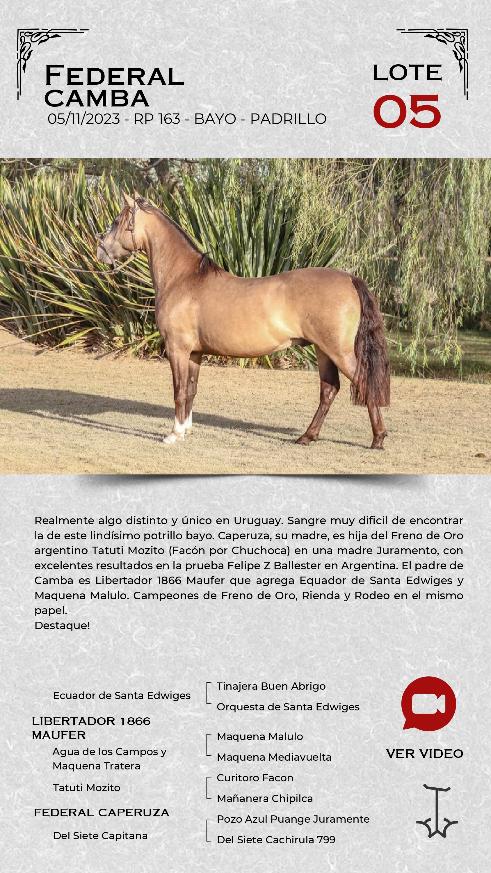 LOTE 5, FEDERAL CAMBA 🔥 🔥 🔥 Lote Anterior Volver al remate Lote Siguiente Ficha Contacto Ofertar Maldonado - Ficha del Lote Identificador: #360401 Categoría: Padrillo RP: 163 Pedigree Plazo 18 cuotas Maldonado - Ofertar Fecha de cierre: 13 de Marzo a las 18:00hs. Aún no tiene ofertas Plazo: Contado 30 días 45 días 60 días 90 días 120 días 180 días Contado, 30 y 60 dias Su Oferta en U$S: (por 18 cuotas) − + Step: -10,00 / +10,00 Programar puja hasta: Programar puja hasta Aumentar puja programada 220 400 Iniciar sesión para ofertar Ofertar Compra por U$S 99.000.000,00 Ofertas Recibidas U$S Fecha/Hora Estado Este lote aún no tiene preofertas. ¿Estás seguro de comprar el LOTE FEDERAL CAMBA por 18 cuotas de U$S 99000000 ? 98 Visualizaciones ClicData Contacto Empresa: JUAN FRANCISCO CHIRUCHI Nombre*: Teléfono* : E-mail* : Mensaje Por informes y consultas 099977007 Enviar