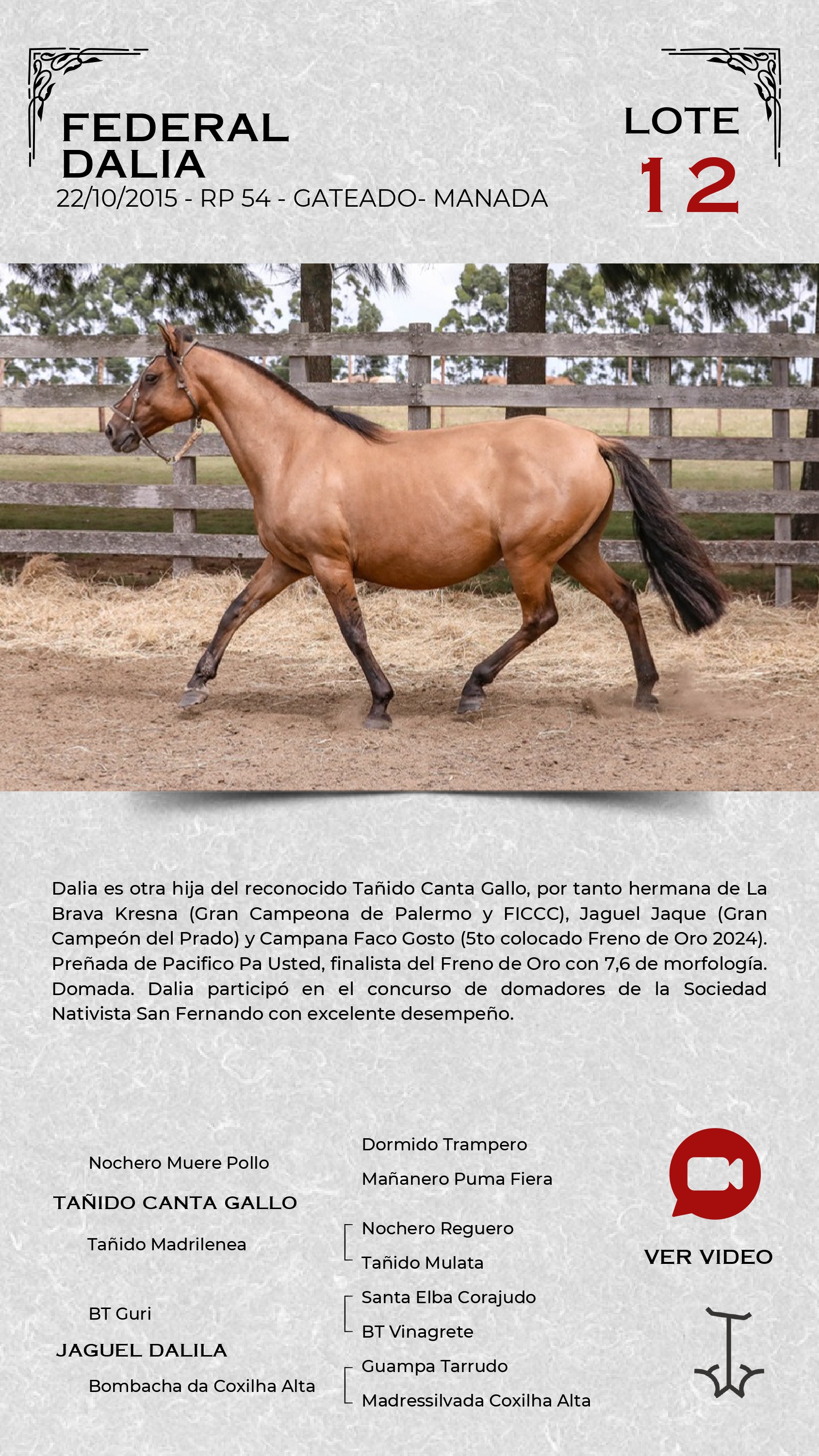LOTE 12, FEDERAL DALIA Lote Anterior Volver al remate Lote Siguiente Ficha Contacto Ofertar Maldonado - Ficha del Lote Identificador: #360408 Categoría: Yegua de manada RP: 54 Pedigree Plazo 18 cuotas Maldonado - Ofertar Fecha de cierre: 13 de Marzo a las 18:00hs. Aún no tiene ofertas Plazo: Contado 30 días 45 días 60 días 90 días 120 días 180 días Contado, 30 y 60 dias Su Oferta en U$S: (por 18 cuotas) − + Step: -10,00 / +10,00 Programar puja hasta: Programar puja hasta Aumentar puja programada 200 380 Iniciar sesión para ofertar Ofertar Compra por U$S 99.000.000,00 Ofertas Recibidas U$S Fecha/Hora Estado Este lote aún no tiene preofertas. ¿Estás seguro de comprar el LOTE FEDERAL DALIA por 18 cuotas de U$S 99000000 ? 41 Visualizaciones ClicData Contacto Empresa: JUAN FRANCISCO CHIRUCHI Nombre*: Teléfono* : E-mail* : Mensaje Por informes y consultas 099977007 Enviar