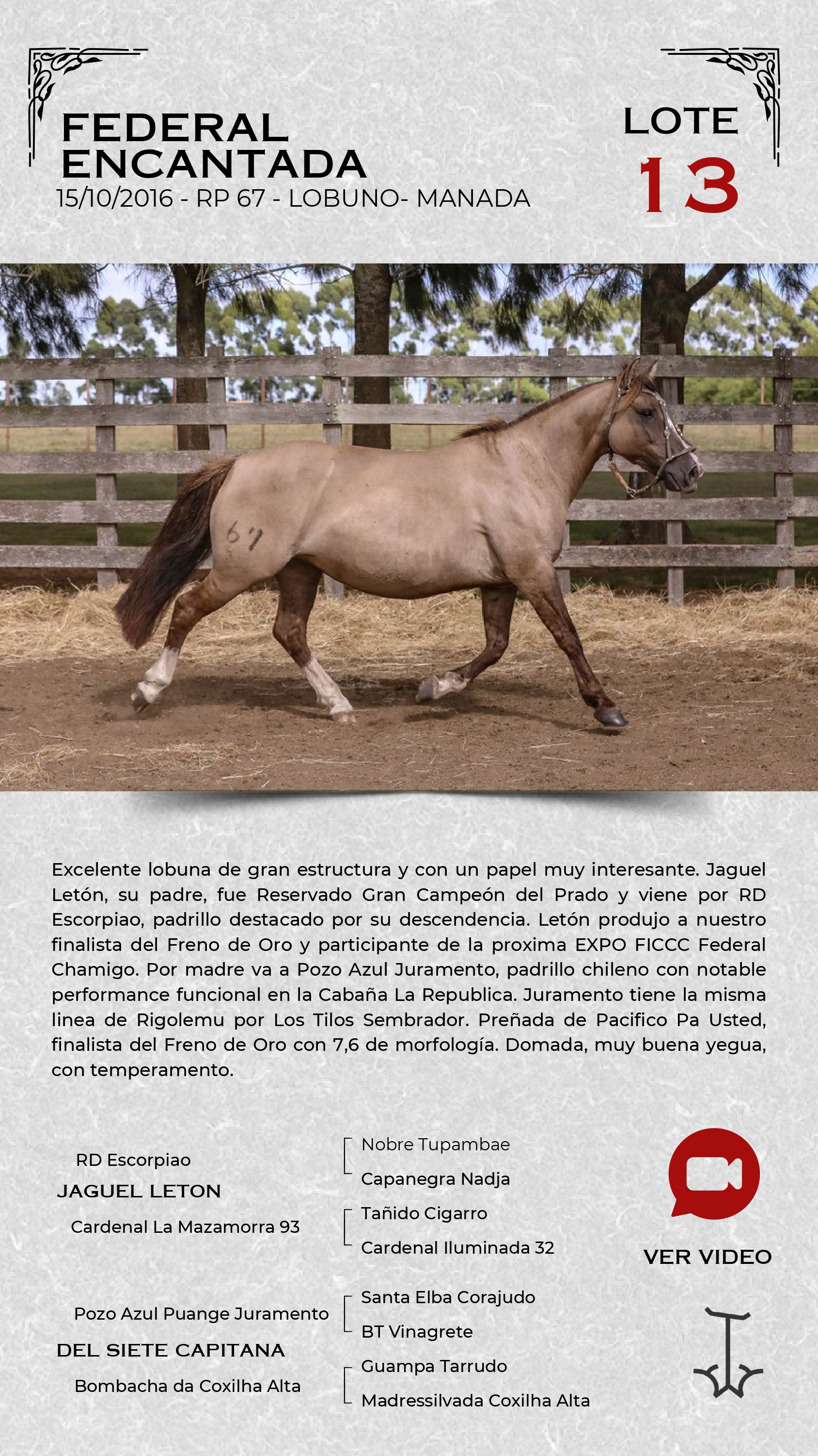 LOTE 13, FEDERAL ENCANTADA 🔥 🔥 🔥 Lote Anterior Volver al remate Lote Siguiente Ficha Contacto Ofertar Maldonado - Ficha del Lote Identificador: #360409 Categoría: Yegua de manada RP: 67 Pedigree Plazo 18 cuotas Maldonado - Ofertar Fecha de cierre: 13 de Marzo a las 18:00hs. Aún no tiene ofertas Plazo: Contado 30 días 45 días 60 días 90 días 120 días 180 días Contado, 30 y 60 dias Su Oferta en U$S: (por 18 cuotas) − + Step: -10,00 / +10,00 Programar puja hasta: Programar puja hasta Aumentar puja programada 200 380 Iniciar sesión para ofertar Ofertar Compra por U$S 99.000.000,00 Ofertas Recibidas U$S Fecha/Hora Estado Este lote aún no tiene preofertas. ¿Estás seguro de comprar el LOTE FEDERAL ENCANTADA por 18 cuotas de U$S 99000000 ? 74 Visualizaciones ClicData Contacto Empresa: JUAN FRANCISCO CHIRUCHI Nombre*: Teléfono* : E-mail* : Mensaje Por informes y consultas 099977007 Enviar