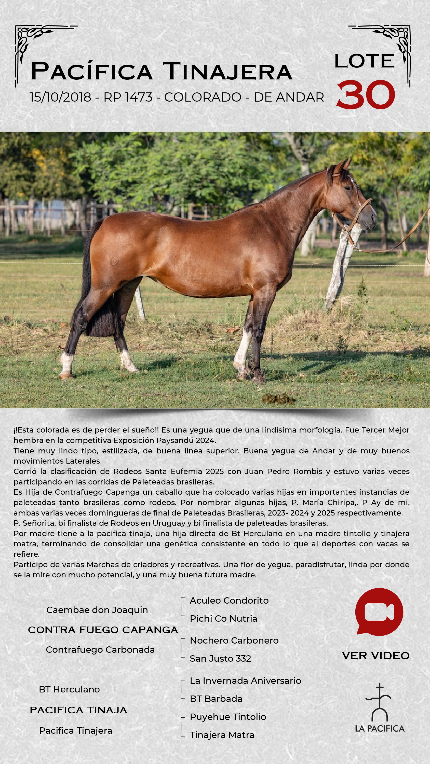 LOTE 30, PACÍFICA TINAJERA 🔥 🔥 🔥 Lote Anterior Volver al remate Ficha Contacto Ofertar Maldonado - Ficha del Lote Identificador: #360425 Categoría: Yegua de andar RP: 1473 Pedigree Plazo 18 cuotas Maldonado - Ofertar Fecha de cierre: 13 de Marzo a las 18:00hs. Aún no tiene ofertas Plazo: Contado 30 días 45 días 60 días 90 días 120 días 180 días Contado, 30 y 60 dias Su Oferta en U$S: (por 18 cuotas) − + Step: -10,00 / +10,00 Programar puja hasta: Programar puja hasta Aumentar puja programada 220 400 Iniciar sesión para ofertar Ofertar Compra por U$S 99.000.000,00 Ofertas Recibidas U$S Fecha/Hora Estado Este lote aún no tiene preofertas. ¿Estás seguro de comprar el LOTE PACÍFICA TINAJERA por 18 cuotas de U$S 99000000 ? 140 Visualizaciones ClicData Contacto Empresa: JUAN FRANCISCO CHIRUCHI Nombre*: Teléfono* : E-mail* : Mensaje Por informes y consultas 099977007 Enviar