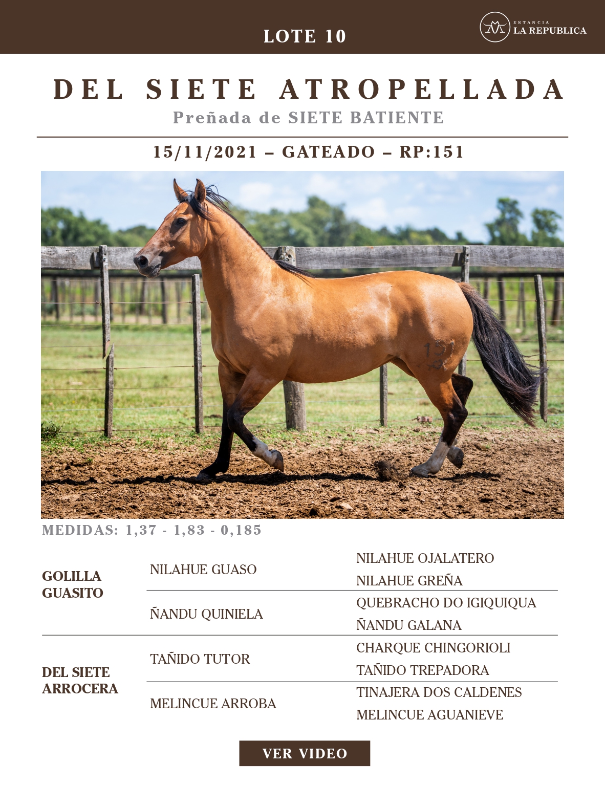 LOTE 10, DEL SIETE ATROPELLADA 🔥 🔥 🔥 Lote Anterior Volver al remate Lote Siguiente Ficha Contacto Ofertar Buenos Aires - Ficha del Lote Identificador: #363787 Categoría: Yeguas RP: 151 Pedigree Plazo 18 cuotas Buenos Aires - Ofertar Fecha de cierre: 31 de Marzo a las 15:00hs. Prórroga: 2 minutos Aún no tiene ofertas Plazo: Contado 30 días 45 días 60 días 90 días 120 días 180 días Contado, 30 y 60 dias Su Oferta en $: (por 18 cuotas) − + Step: -50.000,00 / +50.000,00 Programar puja hasta: Programar puja hasta Aumentar puja programada 600000 1500000 Iniciar sesión para ofertar Ofertar Compra por $ 99.000.000,00 Ofertas Recibidas $ Fecha/Hora Estado Este lote aún no tiene preofertas. ¿Estás seguro de comprar el LOTE DEL SIETE ATROPELLADA por 18 cuotas de $ 99000000 ? 330 Visualizaciones ClicData Contacto Empresa: El Rincón Criollos Nombre*: Teléfono* : E-mail* : Mensaje Enviar Registrese gratis Este contenido Exclusivo está disponible sólo para usuarios registrados Ingresar