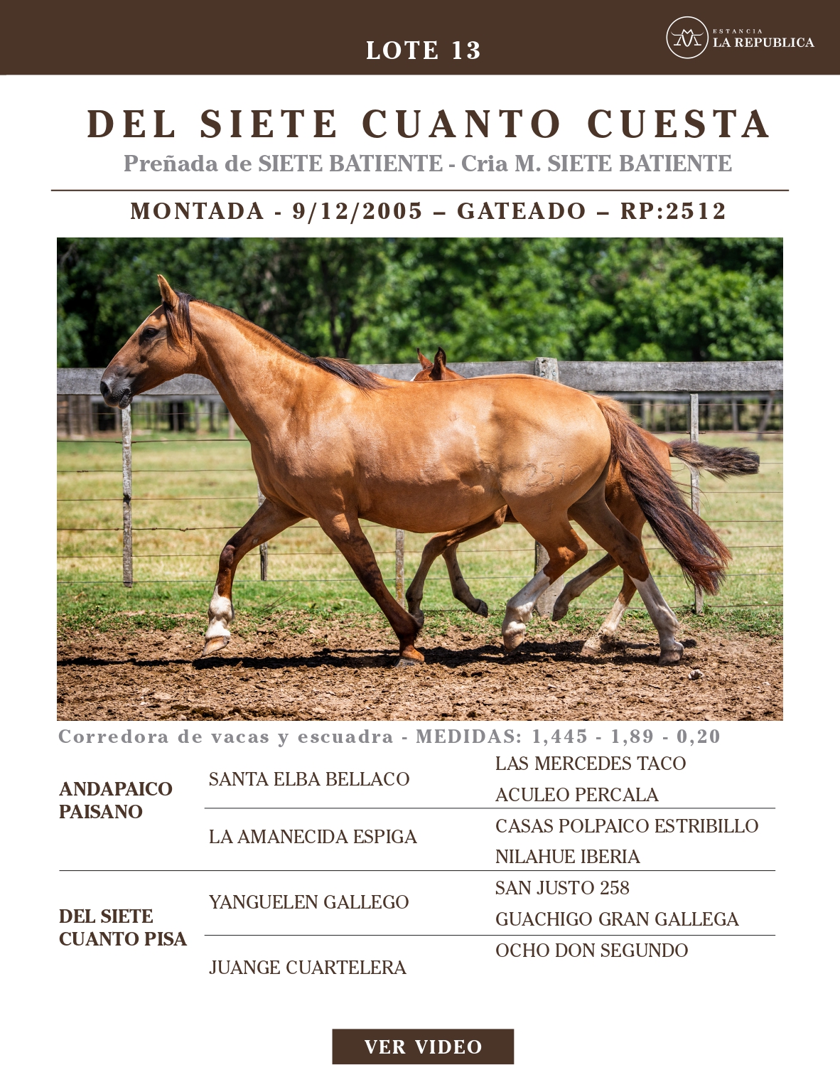 LOTE 13, DEL SIETE CUANTO CUESTA 🔥 🔥 🔥 Lote Anterior Volver al remate Lote Siguiente Ficha Contacto Ofertar Buenos Aires - Ficha del Lote Identificador: #363790 Categoría: Yeguas Montadas RP: 2512 Pedigree Plazo 18 cuotas Buenos Aires - Ofertar Fecha de cierre: 31 de Marzo a las 15:00hs. Prórroga: 2 minutos Aún no tiene ofertas Plazo: Contado 30 días 45 días 60 días 90 días 120 días 180 días Contado, 30 y 60 dias Su Oferta en $: (por 18 cuotas) − + Step: -50.000,00 / +50.000,00 Programar puja hasta: Programar puja hasta Aumentar puja programada 500000 1400000 Iniciar sesión para ofertar Ofertar Compra por $ 99.000.000,00 Ofertas Recibidas $ Fecha/Hora Estado Este lote aún no tiene preofertas. ¿Estás seguro de comprar el LOTE DEL SIETE CUANTO CUESTA por 18 cuotas de $ 99000000 ? 237 Visualizaciones ClicData Contacto Empresa: El Rincón Criollos Nombre*: Teléfono* : E-mail* : Mensaje Enviar Registrese gratis Este contenido Exclusivo está disponible sólo para usuarios registrados Ingresar