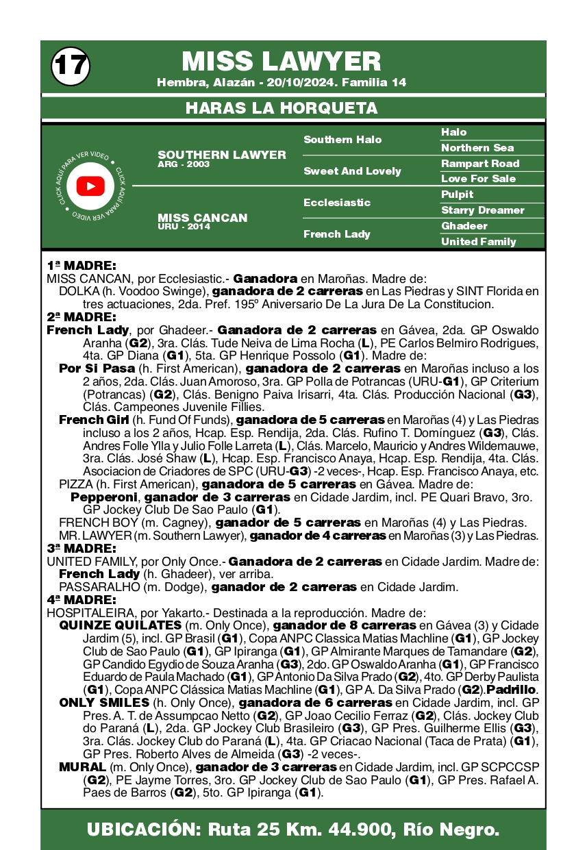 LOTE 17, MISS LAWYER 🔥 🔥 🔥 Lote Anterior Volver al remate Lote Siguiente Ficha Contacto Ofertar San José - Ficha del Lote Identificador: #365821 Categoría: Potranca Pedigree Plazo 12 cuotas Ofertar Se preoferta el valor de la cuota. Fecha de cierre: 14 de Abril a las 12:00hs. Aún no tiene ofertas Plazo: Contado 30 días 45 días 60 días 90 días 120 días 180 días Contado, 30 y 60 dias Su Oferta en U$S: (por 12 cuotas) − + Step: -50,00 / +50,00 Programar puja hasta: Programar puja hasta Aumentar puja programada 400 1300 Iniciar sesión para ofertar Ofertar Compra por U$S 99.000.000,00 Ofertas Recibidas U$S Fecha/Hora Estado Este lote aún no tiene preofertas. ¿Estás seguro de comprar el LOTE MISS LAWYER por 12 cuotas de U$S 99000000 ? 52 Visualizaciones ClicData Contacto Empresa: JUAN FRANCISCO CHIRUCHI Nombre*: Teléfono* : E-mail* : Mensaje Por informes y consultas 099977007 Enviar Registrese gratis Este contenido Exclusivo está disponible sólo para usuarios registrados Ingresar