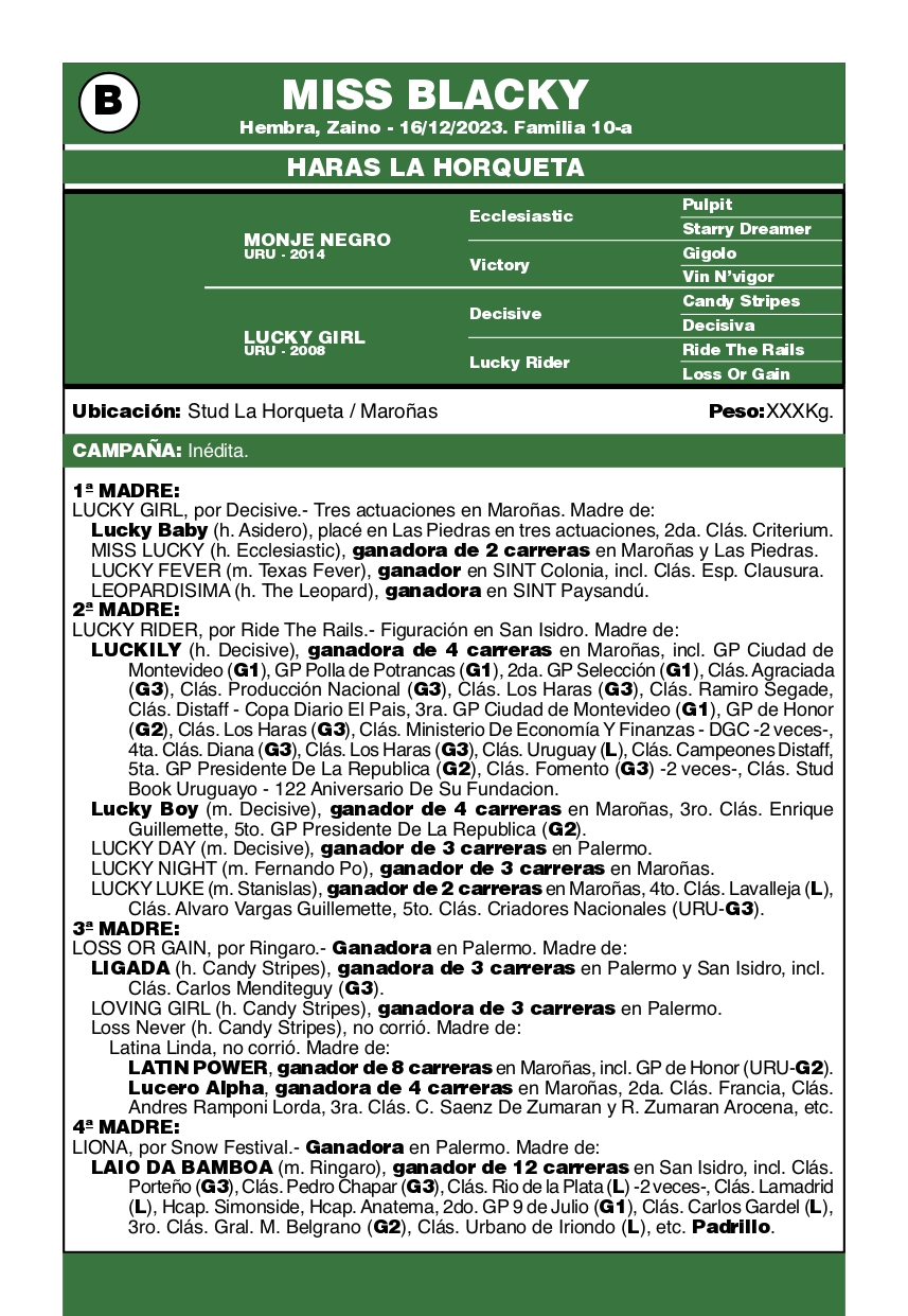 LOTE B, MISS BLACKY 🔥 🔥 🔥 Lote Anterior Volver al remate Lote Siguiente Ficha Contacto Ofertar San José - Ficha del Lote Identificador: #365835 Categoría: Training Pedigree Plazo 5 cuotas San José - Ofertar Fecha de cierre: 14 de Abril a las 12:00hs. Aún no tiene ofertas Plazo: Contado 30 días 45 días 60 días 90 días 120 días 180 días Contado, 30 y 60 dias Su Oferta en U$S: (por 5 cuotas) − + Step: -50,00 / +50,00 Programar puja hasta: Programar puja hasta Aumentar puja programada 500 1400 Iniciar sesión para ofertar Ofertar Compra por U$S 99.000.000,00 Ofertas Recibidas U$S Fecha/Hora Estado Este lote aún no tiene preofertas. ¿Estás seguro de comprar el LOTE MISS BLACKY por 5 cuotas de U$S 99000000 ? 37 Visualizaciones ClicData Contacto Empresa: JUAN FRANCISCO CHIRUCHI Nombre*: Teléfono* : E-mail* : Mensaje Por informes y consultas 099977007 Enviar Registrese gratis Este contenido Exclusivo está disponible sólo para usuarios registrados Ingresar