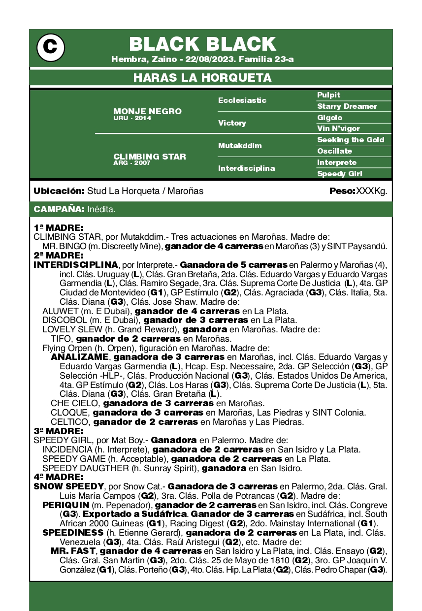 LOTE C, BLACK BLACK 🔥 🔥 🔥 Lote Anterior Volver al remate Lote Siguiente Ficha Contacto Ofertar San José - Ficha del Lote Identificador: #365836 Categoría: Training Pedigree Plazo 5 cuotas San José - Ofertar Fecha de cierre: 14 de Abril a las 12:00hs. Aún no tiene ofertas Plazo: Contado 30 días 45 días 60 días 90 días 120 días 180 días Contado, 30 y 60 dias Su Oferta en U$S: (por 5 cuotas) − + Step: -50,00 / +50,00 Programar puja hasta: Programar puja hasta Aumentar puja programada 500 1400 Iniciar sesión para ofertar Ofertar Compra por U$S 99.000.000,00 Ofertas Recibidas U$S Fecha/Hora Estado Este lote aún no tiene preofertas. ¿Estás seguro de comprar el LOTE BLACK BLACK por 5 cuotas de U$S 99000000 ? 33 Visualizaciones ClicData Contacto Empresa: JUAN FRANCISCO CHIRUCHI Nombre*: Teléfono* : E-mail* : Mensaje Por informes y consultas 099977007 Enviar Registrese gratis Este contenido Exclusivo está disponible sólo para usuarios registrados Ingresar