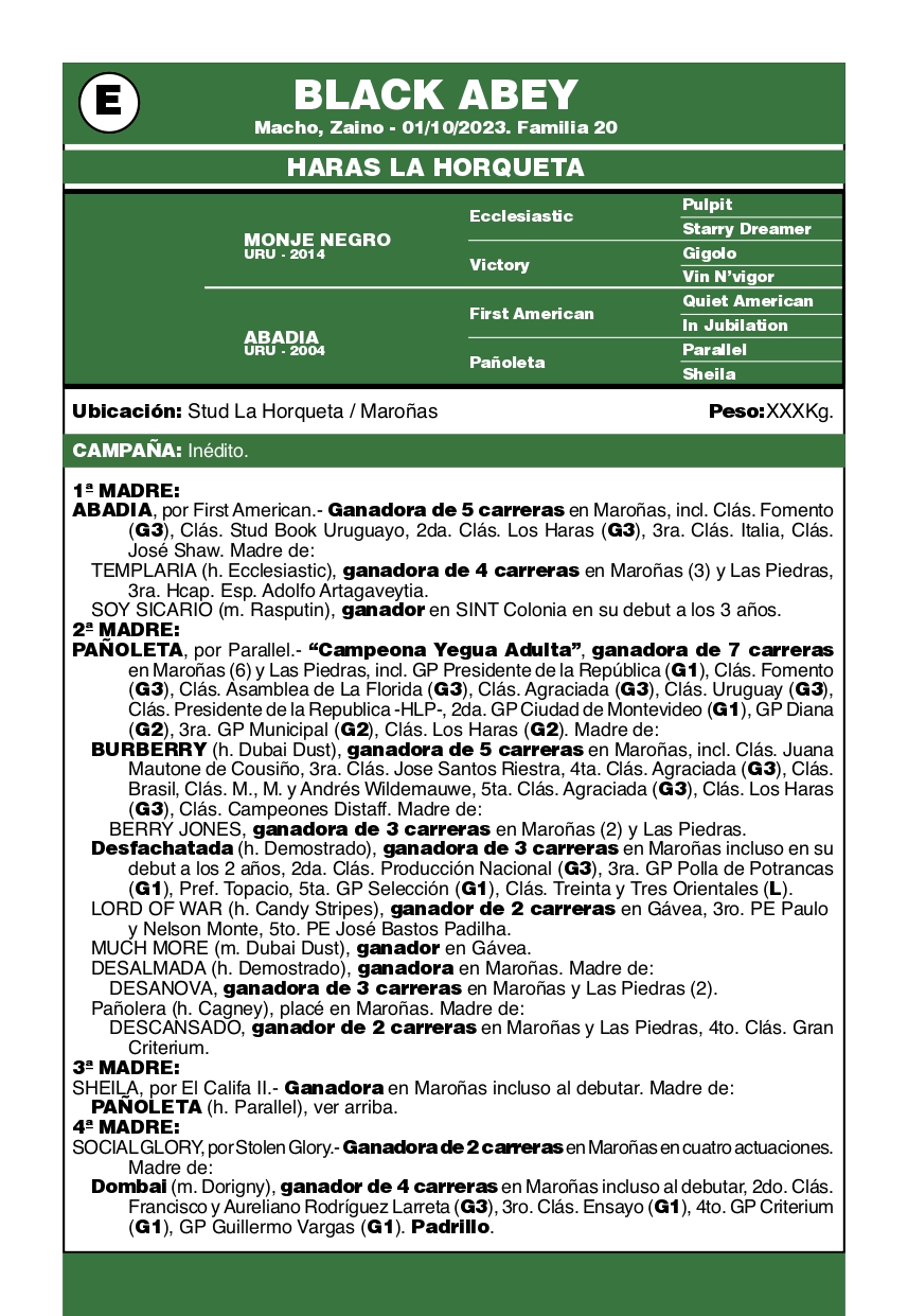 LOTE E, BLACK ABEY 🔥 🔥 🔥 Lote Anterior Volver al remate Ficha Contacto Ofertar San José - Ficha del Lote Identificador: #365838 Categoría: Training Pedigree Plazo 5 cuotas San José - Ofertar Fecha de cierre: 14 de Abril a las 12:00hs. Aún no tiene ofertas Plazo: Contado 30 días 45 días 60 días 90 días 120 días 180 días Contado, 30 y 60 dias Su Oferta en U$S: (por 5 cuotas) − + Step: -50,00 / +50,00 Programar puja hasta: Programar puja hasta Aumentar puja programada 500 1400 Iniciar sesión para ofertar Ofertar Compra por U$S 99.000.000,00 Ofertas Recibidas U$S Fecha/Hora Estado Este lote aún no tiene preofertas. ¿Estás seguro de comprar el LOTE BLACK ABEY por 5 cuotas de U$S 99000000 ? 27 Visualizaciones ClicData Contacto Empresa: JUAN FRANCISCO CHIRUCHI Nombre*: Teléfono* : E-mail* : Mensaje Por informes y consultas 099977007 Enviar Registrese gratis Este contenido Exclusivo está disponible sólo para usuarios registrados Ingresar
