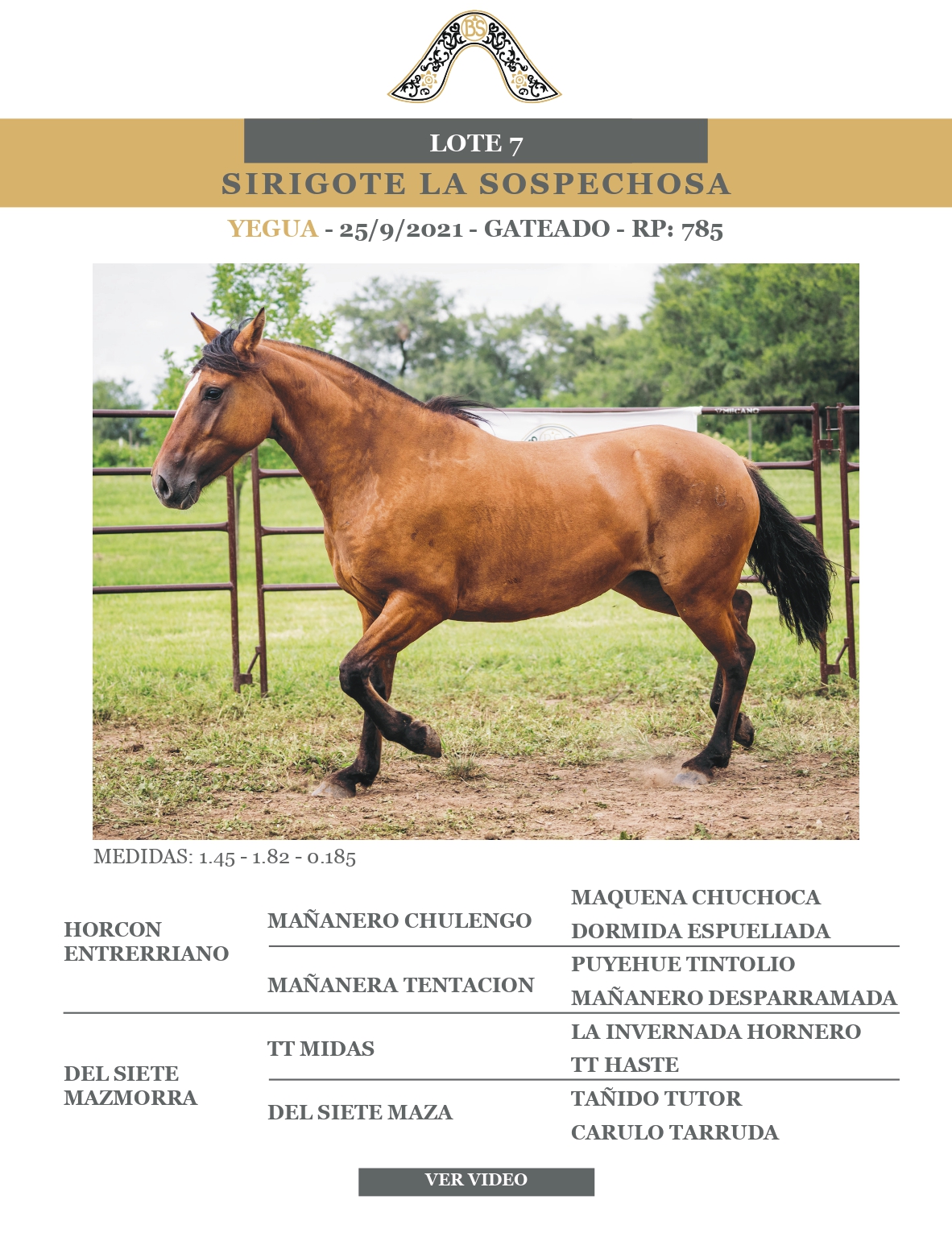 LOTE 7, SIRIGOTE LA SOSPECHOSA Lote Anterior Volver al remate Lote Siguiente Ficha Contacto Ofertar Buenos Aires - Ficha del Lote Identificador: #365972 Categoría: Yeguas RP: 785 Pedigree Buenos Aires - Ofertar Fecha de cierre: 18 de Abril a las 12:00hs. Aún no tiene ofertas Plazo: Contado 30 días 45 días 60 días 90 días 120 días 180 días Contado, 30 y 60 dias Su Oferta en $: − + Step: -50.000,00 / +50.000,00 Programar puja hasta: Programar puja hasta Aumentar puja programada 500000 1400000 **Oferta al bulto Iniciar sesión para ofertar Ofertar Compra por $ 99.000.000,00 Ofertas Recibidas $ Fecha/Hora Estado Este lote aún no tiene preofertas. ¿Estás seguro de comprar el LOTE SIRIGOTE LA SOSPECHOSA por $ 99000000 ? 73 Visualizaciones ClicData Contacto Empresa: El Rincón Criollos Nombre*: Teléfono* : E-mail* : Mensaje Enviar Registrese gratis Este contenido Exclusivo está disponible sólo para usuarios registrados Ingresar