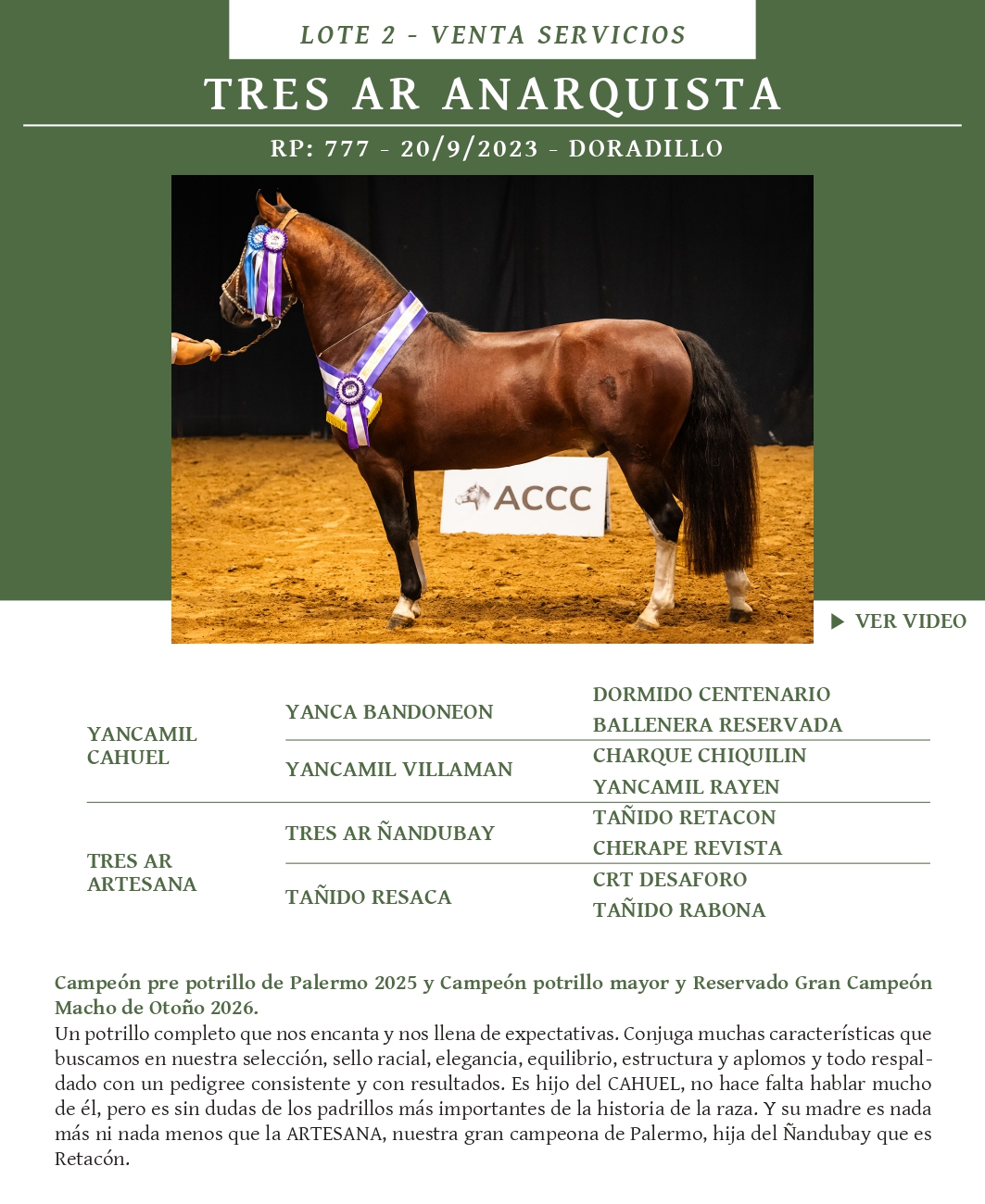 LOTE 2, TRES AR ANARQUISTA 🔥 🔥 🔥 Lote Anterior Volver al remate Lote Siguiente Ficha Contacto Ofertar Buenos Aires - Ficha del Lote Identificador: #367454 Categoría: Servicios RP: 777 Pedigree Buenos Aires - Ofertar Fecha de cierre: 23 de Abril a las 15:00hs. Aún no tiene ofertas Plazo: Contado 30 días 45 días 60 días 90 días 120 días 180 días Contado, 30 y 60 dias Su Oferta en $: − + Step: -50.000,00 / +50.000,00 Programar puja hasta: Programar puja hasta Aumentar puja programada 400000 1300000 **Oferta al bulto Iniciar sesión para ofertar Ofertar Compra por $ 99.000.000,00 Ofertas Recibidas $ Fecha/Hora Estado Este lote aún no tiene preofertas. ¿Estás seguro de comprar el LOTE TRES AR ANARQUISTA por $ 99000000 ? 137 Visualizaciones ClicData Contacto Empresa: El Rincón Criollos Nombre*: Teléfono* : E-mail* : Mensaje Enviar Registrese gratis Este contenido Exclusivo está disponible sólo para usuarios registrados Ingresar
