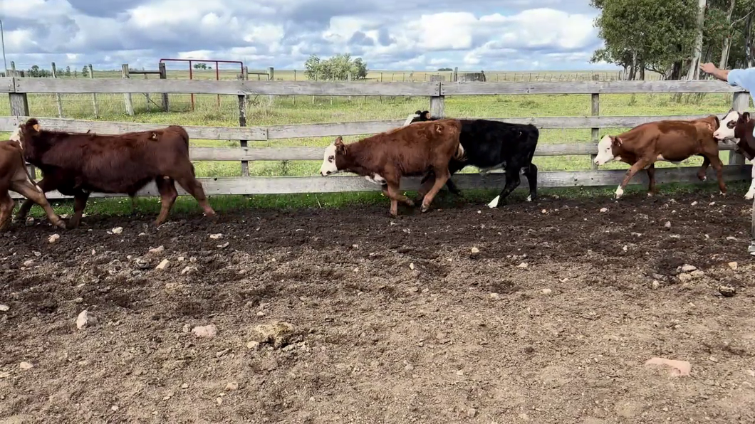 Lote de terneros de linda cruza carnicera, conjunto bien logrado, de buen tipo y desarrollo acorde, algo desparejo en peso con mayoría en un rango medio y algunos más adelantados. Ganado sano, que muestra buen potencial para recría.