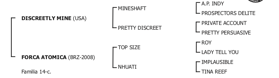 FORCA ATOMICA, por Top Size.- Ganadora de 5 carreras consecutivas en Maro- ñas, incl. Clás. Pedro Indart Denis (URU), Clás. Yerba Amarga (URU), 3ro. Clás. Plinio Oribe y Andres Oribe Deus (URU), hermana materna de HIJO LEJANO (BRZ-L). Madre de: