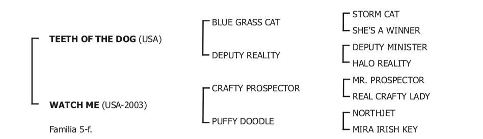 WATCH ME (USA), por Crafty Prospector.- Ganador de 2 carreras en USA. M. de: Sub Watch (URU.- h. Subordination), ganadora de 3 carreras en Maroñas, 3ra.