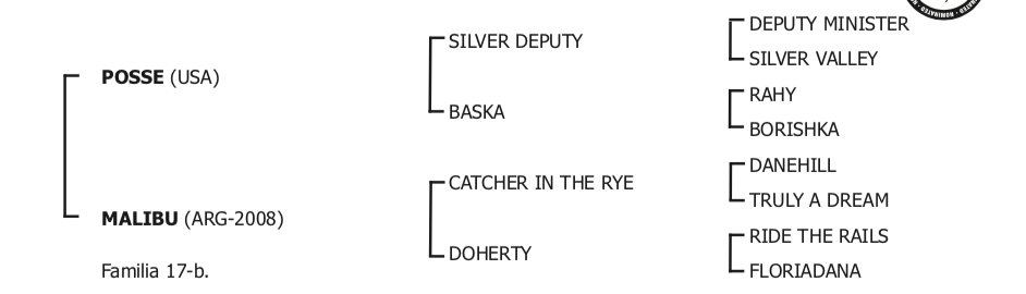MALIBU (ARG), por Catcher In The Rye.- Ganadora de 2 cs. en Maroñas. Madre de: MALI BLUE (URU.- m. Blue Grass Cat), 2015’, ganador de 3 carreras a los 3 años
