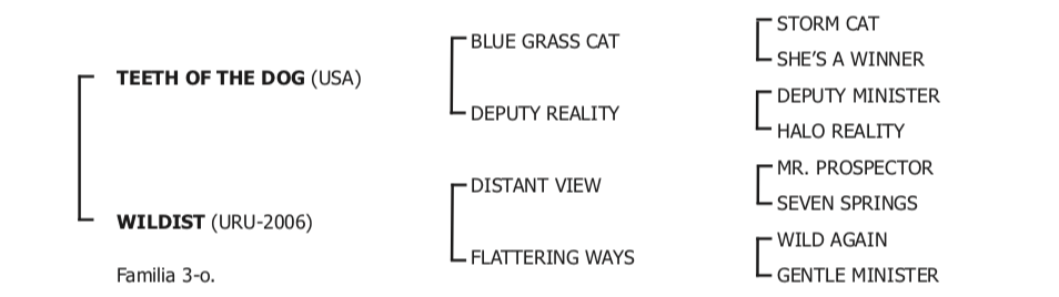 WILDIST (URU), por Distant View.- Disputó una carrera en Uruguay. Madre de: SUB STORY (URU.- h. Subordination), ganadora de 2 carreras a los 2 y 3 años