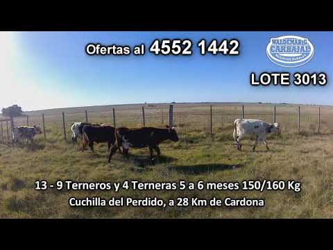 LOTE 15, 13 Terneros y Terneras 5 NO - 4 HE/ AA - 2 HE/ RA - 2 HE a remate en Pantalla #84 150/160 Kgkg - en Cuchilla del Perdido, a 28 Km de Cardona