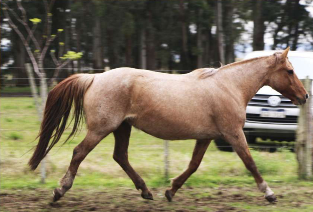 Esta yegua nunca se domó porque quedó con el cogote sentido en una palenqueada, pero es muy mansa de lidear.