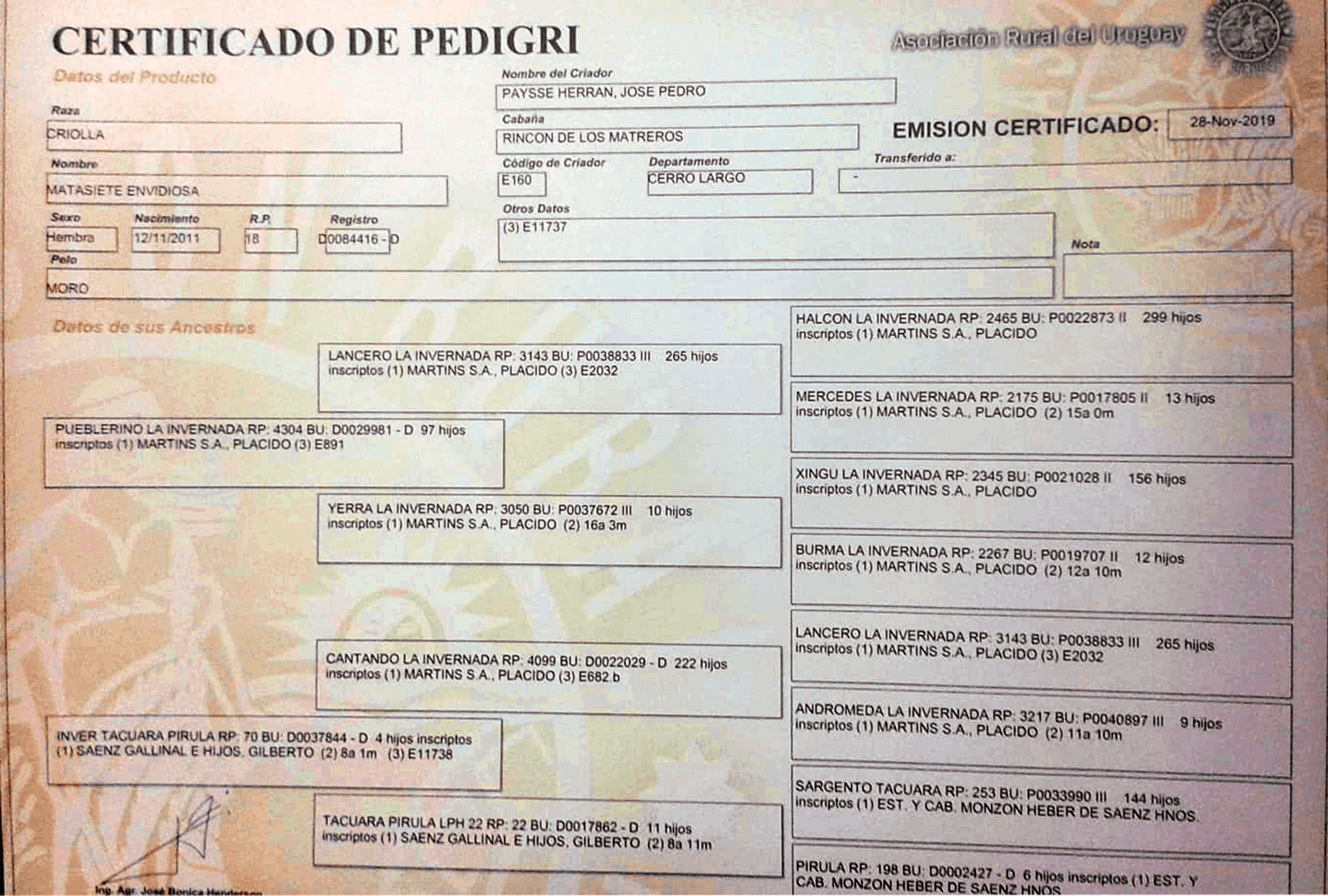 LOTE 13, RP 18 - MATASIETE EVIDIOSA 🔥 🔥 🔥 Lote Anterior Volver al remate Lote Siguiente Ficha Contacto Ofertar Cerro Largo - Ficha del Lote Identificador: #55861 Categoría: Yegua de andar Edad: 8 años RP: 18 Pedigree Descripción: YEGUA MANSA DE RECIENTE DOMA. DE BUENOS ANDARES. CON UN PEDIGREE INTERESANTE COMO PARA PONERLA EN LA RUTA. HIJA DE "CARTUCHO LI" CON MADRE GALLINAL. Plazo 18 cuotas Raza Criollos Cerro Largo - Ofertar Aún no tiene ofertas Plazo: Contado 30 días 45 días 60 días 90 días 120 días 180 días Contado, 30 y 60 dias Su Oferta en U$S: (por 18 cuotas) − + Step: -5,00 / +5,00 Programar puja hasta: Programar puja hasta Aumentar puja programada 90 180 Iniciar sesión para ofertar Ofertar Listado de preofertas U$S Fecha/Hora Estado Este lote aún no tiene preofertas. 138 Visualizaciones ClicData Contacto Comercial a cargo: Pablo Netto Empresa: Silveira Agronegocios Nombre*: Teléfono* : E-mail* : Mensaje Por informes y consultas 4642 4728, 099704452, 099264557, 099587957 Enviar Registrese gratis Este contenido Exclusivo está disponible sólo para usuarios registrados Ingresar