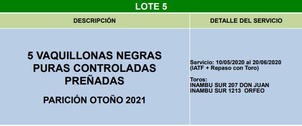 LOTE 45, VAQUILLONAS PC "INAMBU" Lote Anterior Volver al remate Información del Lote Pedigree Ofertar Contacto Buenos Aires - Balcarce Información del Lote Identificador: #80340 Cantidad 5 Categoría Vaquillonas PC preñadas Raza Angus Negro Certificado 5 Departamento Buenos Aires Ubicación Balcarce Plazo Consultar Buenos Aires - Balcarce Ofertar Aún no tiene ofertas Plazo: Contado 30 días 45 días 60 días 90 días 120 días 180 días Contado, 30 y 60 dias Su Oferta en $: − + Step: -2.500,00 / +2.500,00 Programar puja hasta: Programar puja hasta Aumentar puja programada 70000 115000 **Oferta al bulto Iniciar sesión para ofertar Ofertar Listado de preofertas $ Fecha/Hora Estado Este lote aún no tiene preofertas. 102 Visualizaciones ClicData Pedigree Contacto Comercial a cargo: Stefanía Empresa: FONTANA CONSIGNATARIOS S.A. Nombre*: E-mail* : Mensaje Enviar Registrese gratis Este contenido Exclusivo está disponible sólo para usuarios registrados Ingresar