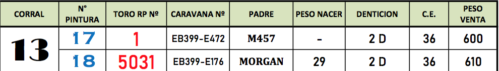 LOTE 13, TOROS A.NEGROS PC CABAÑA MAYACO Lote Anterior Volver al remate Lote Siguiente Información del Lote Animales del Lote Pedigree Contacto La Pampa - Eduardo Castex Información del Lote Identificador: #80749 Cantidad 2 Categoría Toros PC Raza Angus Negro Departamento La Pampa Ubicación Eduardo Castex Plazo 30, 60, 90, 120 y 150 días La Pampa - Eduardo Castex 100 Visualizaciones ClicData Animales del Lote RP 17 18 CE 36 36 PF 600 610 PN 29 PRECIO BASE 0.00 0.00 RP 17 CE 36 PF 600 PRECIO BASE 0.00 RP 18 CE 36 PF 610 PN 29 PRECIO BASE 0.00 Pedigree Contacto Comercial a cargo: Mauricio Gabriel Empresa: BRANDEMANN CONSIGNATARIA S.R.L. Nombre*: E-mail* : Mensaje Por informes y consultas 02334-444113 Enviar Registrese gratis Este contenido Exclusivo está disponible sólo para usuarios registrados Ingresar