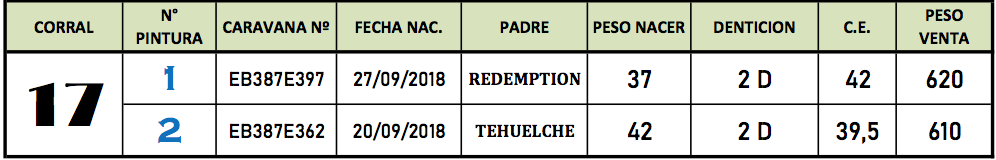 LOTE 17, TOROS A.COLORADO PC CABAÑA VILLA MARIA 🔥 🔥 🔥 Lote Anterior Volver al remate Lote Siguiente Información del Lote Animales del Lote Pedigree Contacto La Pampa - Eduardo Castex Información del Lote Identificador: #80767 Cantidad 2 Categoría Toros PC Raza Angus Negro Departamento La Pampa Ubicación Eduardo Castex Plazo 30, 60, 90, 120 y 150 días La Pampa - Eduardo Castex 144 Visualizaciones ClicData Animales del Lote RP 1 2 CE 42 39,5 PF 620 610 PN 37 42 PRECIO BASE 0.00 0.00 RP 1 CE 42 PF 620 PN 37 PRECIO BASE 0.00 RP 2 CE 39,5 PF 610 PN 42 PRECIO BASE 0.00 Pedigree Contacto Comercial a cargo: Mauricio Gabriel Empresa: BRANDEMANN CONSIGNATARIA S.R.L. Nombre*: E-mail* : Mensaje Por informes y consultas 02334-444113 Enviar Registrese gratis Este contenido Exclusivo está disponible sólo para usuarios registrados Ingresar