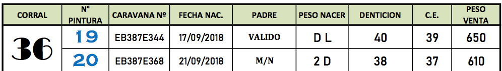 LOTE 36, TOROS PR CABAÑA VILLA MARIA Lote Anterior Volver al remate Lote Siguiente Información del Lote Animales del Lote Pedigree Contacto La Pampa - Eduardo Castex Información del Lote Identificador: #80801 Cantidad 2 Categoría Toros PR Raza Polled Hereford Departamento La Pampa Ubicación Eduardo Castex Plazo 30, 60, 90, 120 y 150 días La Pampa - Eduardo Castex 87 Visualizaciones ClicData Animales del Lote RP 19 20 CE 39 37 PF 650 610 PN 40 38 PRECIO BASE 0.00 0.00 RP 19 CE 39 PF 650 PN 40 PRECIO BASE 0.00 RP 20 CE 37 PF 610 PN 38 PRECIO BASE 0.00 Pedigree Contacto Comercial a cargo: Mauricio Gabriel Empresa: BRANDEMANN CONSIGNATARIA S.R.L. Nombre*: E-mail* : Mensaje Por informes y consultas 02334-444113 Enviar Registrese gratis Este contenido Exclusivo está disponible sólo para usuarios registrados Ingresar