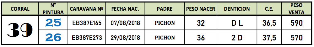 LOTE 39, TOROS PR CABAÑA VILLA MARIA Lote Anterior Volver al remate Lote Siguiente Información del Lote Animales del Lote Pedigree Contacto La Pampa - Eduardo Castex Información del Lote Identificador: #80804 Cantidad 2 Categoría Toros PR Raza Polled Hereford Departamento La Pampa Ubicación Eduardo Castex Plazo 30, 60, 90, 120 y 150 días La Pampa - Eduardo Castex 84 Visualizaciones ClicData Animales del Lote RP 25 26 CE 36,5 37,5 PF 590 570 PN 32 36 PRECIO BASE 0.00 0.00 RP 25 CE 36,5 PF 590 PN 32 PRECIO BASE 0.00 RP 26 CE 37,5 PF 570 PN 36 PRECIO BASE 0.00 Pedigree Contacto Comercial a cargo: Mauricio Gabriel Empresa: BRANDEMANN CONSIGNATARIA S.R.L. Nombre*: E-mail* : Mensaje Por informes y consultas 02334-444113 Enviar Registrese gratis Este contenido Exclusivo está disponible sólo para usuarios registrados Ingresar