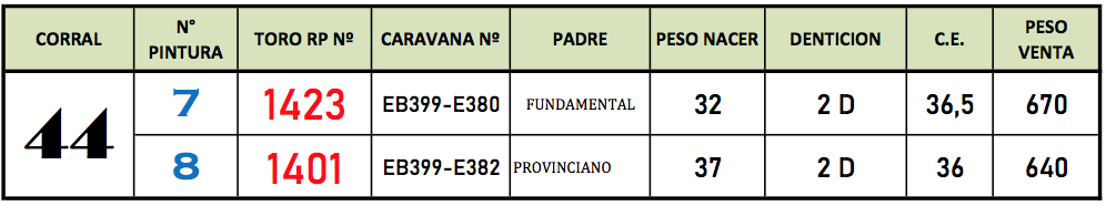 LOTE 44, TOROS PR CABAÑA MAYACO Lote Anterior Volver al remate Lote Siguiente Información del Lote Animales del Lote Pedigree Contacto La Pampa - Eduardo Castex Información del Lote Identificador: #80811 Cantidad 2 Categoría Toros PR Raza Polled Hereford Departamento La Pampa Ubicación Eduardo Castex Plazo 30, 60, 90, 120 y 150 días La Pampa - Eduardo Castex 86 Visualizaciones ClicData Animales del Lote RP 7 8 CE 36,5 36 PF 670 640 PN 32 37 PRECIO BASE 0.00 0.00 RP 7 CE 36,5 PF 670 PN 32 PRECIO BASE 0.00 RP 8 CE 36 PF 640 PN 37 PRECIO BASE 0.00 Pedigree Contacto Comercial a cargo: Mauricio Gabriel Empresa: BRANDEMANN CONSIGNATARIA S.R.L. Nombre*: E-mail* : Mensaje Por informes y consultas 02334-444113 Enviar Registrese gratis Este contenido Exclusivo está disponible sólo para usuarios registrados Ingresar