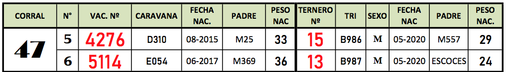 LOTE 47, VAQ. PC ANGUS NEGRAS CON CRIAS Lote Anterior Volver al remate Lote Siguiente Información del Lote Animales del Lote Pedigree Contacto La Pampa - Eduardo Castex Información del Lote Identificador: #80814 Cantidad 2 Categoría Vaquillonas PC preñadas Raza Angus Negro Departamento La Pampa Ubicación Eduardo Castex Plazo 60, 90 y 120 días La Pampa - Eduardo Castex 89 Visualizaciones ClicData Animales del Lote RP 5-15 6-13 PN 33 36 PRECIO BASE 0.00 0.00 RP 5-15 PN 33 PRECIO BASE 0.00 RP 6-13 PN 36 PRECIO BASE 0.00 Pedigree Contacto Comercial a cargo: Mauricio Gabriel Empresa: BRANDEMANN CONSIGNATARIA S.R.L. Nombre*: E-mail* : Mensaje Por informes y consultas 02334-444113 Enviar Registrese gratis Este contenido Exclusivo está disponible sólo para usuarios registrados Ingresar
