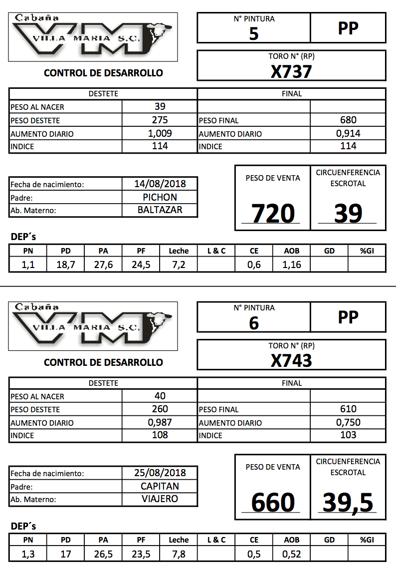 LOTE 3, Toros P. Hereford PP y S/ de 2 años. Lote Anterior Volver al remate Lote Siguiente Información del Lote Animales del Lote Pedigree Contacto La Pampa - Eduardo Castex Información del Lote Identificador: #83954 Cantidad 2 Categoría Toros PP Raza Polled Hereford Departamento La Pampa Ubicación Eduardo Castex Plazo 30, 60, 90, 120 y 150 días La Pampa - Eduardo Castex 175 Visualizaciones ClicData Animales del Lote RP 5 6 NAC 25-08-18 CE 39 39,5 PF 720 660 PN 39 40 PRECIO BASE 0.00 0.00 RP 5 CE 39 PF 720 PN 39 PRECIO BASE 0.00 RP 6 NAC 25-08-18 CE 39,5 PF 660 PN 40 PRECIO BASE 0.00 Pedigree Contacto Comercial a cargo: Mauricio Gabriel Empresa: BRANDEMANN CONSIGNATARIA S.R.L. Nombre*: E-mail* : Mensaje Por informes y consultas 02334-444113 Enviar Registrese gratis Este contenido Exclusivo está disponible sólo para usuarios registrados Ingresar