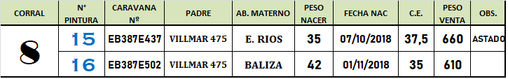 LOTE 8, Toros P. Hereford PR de 2 años. Lote Anterior Volver al remate Lote Siguiente Información del Lote Animales del Lote Pedigree Contacto La Pampa - Eduardo Castex Información del Lote Identificador: #83962 Cantidad 2 Categoría Toros PR Raza Polled Hereford Departamento La Pampa Ubicación Eduardo Castex Plazo 30, 60, 90, 120 y 150 días La Pampa - Eduardo Castex 124 Visualizaciones ClicData Animales del Lote RP 15 16 NAC 07-10-18 01-11-18 CE 37,5 37,5 PF 660 660 PN 35 35 PRECIO BASE 0.00 0.00 RP 15 NAC 07-10-18 CE 37,5 PF 660 PN 35 PRECIO BASE 0.00 RP 16 NAC 01-11-18 CE 37,5 PF 660 PN 35 PRECIO BASE 0.00 Pedigree Contacto Comercial a cargo: Mauricio Gabriel Empresa: BRANDEMANN CONSIGNATARIA S.R.L. Nombre*: E-mail* : Mensaje Por informes y consultas 02334-444113 Enviar Registrese gratis Este contenido Exclusivo está disponible sólo para usuarios registrados Ingresar