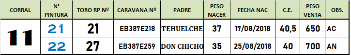 LOTE 11, Toros A. Negros y Colorados PP de 2 años. 🔥 🔥 🔥 Lote Anterior Volver al remate Lote Siguiente Información del Lote Animales del Lote Pedigree Contacto La Pampa - Eduardo Castex Información del Lote Identificador: #83969 Cantidad 2 Categoría Toros PP Raza Polled Hereford Departamento La Pampa Ubicación Eduardo Castex Plazo 30, 60, 90, 120 y 150 días La Pampa - Eduardo Castex 178 Visualizaciones ClicData Animales del Lote RP 21 22 NAC 17-08-18 25-08-18 CE 40,5 40 PF 650 700 PN 37 35 PRECIO BASE 0.00 0.00 RP 21 NAC 17-08-18 CE 40,5 PF 650 PN 37 PRECIO BASE 0.00 RP 22 NAC 25-08-18 CE 40 PF 700 PN 35 PRECIO BASE 0.00 Pedigree Contacto Comercial a cargo: Mauricio Gabriel Empresa: BRANDEMANN CONSIGNATARIA S.R.L. Nombre*: E-mail* : Mensaje Por informes y consultas 02334-444113 Enviar Registrese gratis Este contenido Exclusivo está disponible sólo para usuarios registrados Ingresar