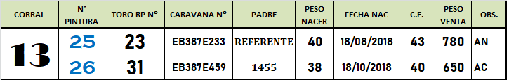 LOTE 13, Toros A. Negros y Colorados PP de 2 años. Lote Anterior Volver al remate Lote Siguiente Información del Lote Animales del Lote Pedigree Contacto La Pampa - Eduardo Castex Información del Lote Identificador: #83974 Cantidad 2 Categoría Toros PP Raza Polled Hereford Departamento La Pampa Ubicación Eduardo Castex Plazo 30, 60, 90, 120 y 150 días La Pampa - Eduardo Castex 127 Visualizaciones ClicData Animales del Lote RP 25 26 NAC 18-08-18 18-10-18 CE 43 40 PF 780 650 PN 40 38 PRECIO BASE 0.00 0.00 RP 25 NAC 18-08-18 CE 43 PF 780 PN 40 PRECIO BASE 0.00 RP 26 NAC 18-10-18 CE 40 PF 650 PN 38 PRECIO BASE 0.00 Pedigree Contacto Comercial a cargo: Mauricio Gabriel Empresa: BRANDEMANN CONSIGNATARIA S.R.L. Nombre*: E-mail* : Mensaje Por informes y consultas 02334-444113 Enviar Registrese gratis Este contenido Exclusivo está disponible sólo para usuarios registrados Ingresar