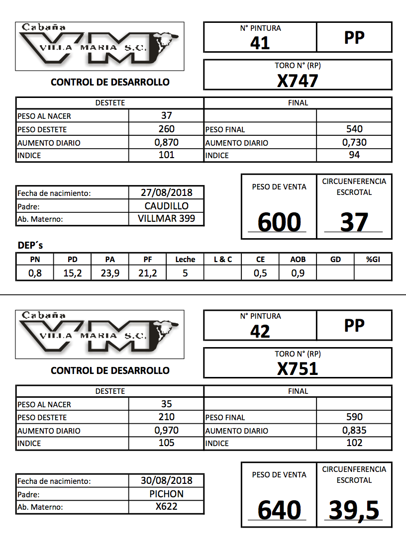 LOTE 21, Toros P. Hereford PP de 2 años. Lote Anterior Volver al remate Lote Siguiente Información del Lote Animales del Lote Pedigree Contacto La Pampa - Eduardo Castex Información del Lote Identificador: #83996 Cantidad 2 Categoría Toros PP Raza Polled Hereford Departamento La Pampa Ubicación Eduardo Castex Plazo 30, 60, 90, 120 y 150 días La Pampa - Eduardo Castex 128 Visualizaciones ClicData Animales del Lote RP 41 42 CE 37 39,5 PF 600 640 PN 37 35 PRECIO BASE 0.00 0.00 RP 41 CE 37 PF 600 PN 37 PRECIO BASE 0.00 RP 42 CE 39,5 PF 640 PN 35 PRECIO BASE 0.00 Pedigree Contacto Comercial a cargo: Mauricio Gabriel Empresa: BRANDEMANN CONSIGNATARIA S.R.L. Nombre*: E-mail* : Mensaje Por informes y consultas 02334-444113 Enviar Registrese gratis Este contenido Exclusivo está disponible sólo para usuarios registrados Ingresar