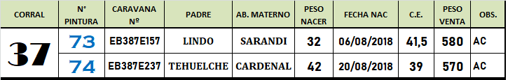 LOTE 37, Toros A. Colorados PC de 2 años. Lote Anterior Volver al remate Lote Siguiente Información del Lote Animales del Lote Pedigree Contacto La Pampa - Eduardo Castex Información del Lote Identificador: #84059 Cantidad 2 Categoría Toros PC Raza Angus Colorado Departamento La Pampa Ubicación Eduardo Castex Plazo 30, 60, 90, 120 y 150 días La Pampa - Eduardo Castex 100 Visualizaciones ClicData Animales del Lote RP 73 74 CE 41,5 39 PF 580 570 PN 32 42 PRECIO BASE 0.00 0.00 RP 73 CE 41,5 PF 580 PN 32 PRECIO BASE 0.00 RP 74 CE 39 PF 570 PN 42 PRECIO BASE 0.00 Pedigree Contacto Comercial a cargo: Mauricio Gabriel Empresa: BRANDEMANN CONSIGNATARIA S.R.L. Nombre*: E-mail* : Mensaje Por informes y consultas 02334-444113 Enviar Registrese gratis Este contenido Exclusivo está disponible sólo para usuarios registrados Ingresar