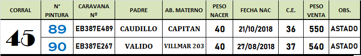 LOTE 45, Toros P. Hereford PR de 2 años.