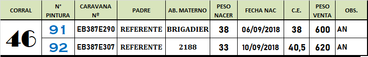 LOTE 46, Toros A. Negros PC de 2 años. Lote Anterior Volver al remate Lote Siguiente Información del Lote Animales del Lote Pedigree Contacto La Pampa - Eduardo Castex Información del Lote Identificador: #84088 Cantidad 2 Categoría Toros PC Raza Angus Negro Departamento La Pampa Ubicación Eduardo Castex Plazo 30, 60, 90, 120 y 150 días La Pampa - Eduardo Castex 98 Visualizaciones ClicData Animales del Lote RP 91 92 CE 38 40,5 PF 600 620 PN 38 33 PRECIO BASE 0.00 0.00 RP 91 CE 38 PF 600 PN 38 PRECIO BASE 0.00 RP 92 CE 40,5 PF 620 PN 33 PRECIO BASE 0.00 Pedigree Contacto Comercial a cargo: Mauricio Gabriel Empresa: BRANDEMANN CONSIGNATARIA S.R.L. Nombre*: E-mail* : Mensaje Por informes y consultas 02334-444113 Enviar Registrese gratis Este contenido Exclusivo está disponible sólo para usuarios registrados Ingresar