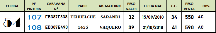 LOTE 54, Toros A. Colorados PC de 2 años. Lote Anterior Volver al remate Lote Siguiente Información del Lote Animales del Lote Pedigree Contacto La Pampa - Eduardo Castex Información del Lote Identificador: #84096 Cantidad 2 Categoría Toros PC Raza Angus Colorado Departamento La Pampa Ubicación Eduardo Castex Plazo 30, 60, 90, 120 y 150 días La Pampa - Eduardo Castex 92 Visualizaciones ClicData Animales del Lote RP 107 108 CE 34 41 PF 550 590 PN 32 39 PRECIO BASE 0.00 0.00 RP 107 CE 34 PF 550 PN 32 PRECIO BASE 0.00 RP 108 CE 41 PF 590 PN 39 PRECIO BASE 0.00 Pedigree Contacto Comercial a cargo: Mauricio Gabriel Empresa: BRANDEMANN CONSIGNATARIA S.R.L. Nombre*: E-mail* : Mensaje Por informes y consultas 02334-444113 Enviar Registrese gratis Este contenido Exclusivo está disponible sólo para usuarios registrados Ingresar