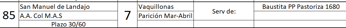 LOTE 60, VAQUILLONAS ANGUS COL.INSEMINADA MAS Lote Anterior Volver al remate Lote Siguiente Información del Lote Pedigree Ofertar Contacto Buenos Aires - Brandsen Información del Lote Identificador: #84128 Cantidad 7 Categoría Vaquillonas Raza Angus Certificado 85 Departamento Buenos Aires Ubicación Brandsen Plazo 30 y 60 días Buenos Aires - Brandsen Ofertar Aún no tiene ofertas Plazo: Contado 30 días 45 días 60 días 90 días 120 días 180 días Contado, 30 y 60 dias Su Oferta en $: − + Step: -2.000,00 / +2.000,00 Programar puja hasta: Programar puja hasta Aumentar puja programada 72000 108000 **Oferta al bulto Iniciar sesión para ofertar Ofertar Listado de preofertas $ Fecha/Hora Estado Este lote aún no tiene preofertas. 76 Visualizaciones ClicData Información del Lote Contacto Comercial a cargo: JOAQUIN JAUREGUI LORDA Y RICKY ORAZI Empresa: JÁUREGUI LORDA S.R.L. Nombre*: E-mail* : Mensaje Enviar Registrese gratis Este contenido Exclusivo está disponible sólo para usuarios registrados Ingresar