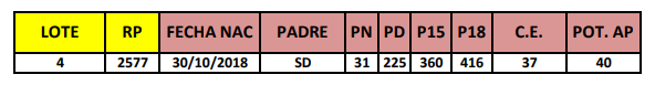 LOTE 303, Toros BRANGUS RP 387 2535 2577 330 Lote Anterior Volver al remate Lote Siguiente Contacto Ofertar Salto - Ficha del Lote Identificador: #88582 Cantidad: 4 Categoría: Toros Información Genética RP 387 RP 387 PADRE 1725 NACIMIENTO 31/10/2018 PRECIO BASE 0.00 RP 2535 RP 2535 PADRE SD NACIMIENTO 10/10/2018 PRECIO BASE 0.00 RP 2577 RP 2577 PADRE SD NACIMIENTO 30/10/2018 PRECIO BASE 0.00 RP 330 RP 330 PADRE PIMENTON NACIMIENTO 26/8/2018 PRECIO BASE 0.00 Salto - Ofertar Aún no tiene ofertas Animales: 387 2535 2577 330 Plazo: Contado 30 días 45 días 60 días 90 días 120 días 180 días Contado, 30 y 60 dias Su Oferta en U$S: − + Step: -100,00 / +100,00 Programar puja hasta: Programar puja hasta Aumentar puja programada 2700 4500 **Oferta al bulto Iniciar sesión para ofertar Ofertar Listado de preofertas U$S Fecha/Hora Estado Este lote aún no tiene preofertas. 73 Visualizaciones ClicData Contacto Empresa: Correa y San Roman Nombre*: Teléfono* : E-mail* : Mensaje Enviar Registrese gratis Este contenido Exclusivo está disponible sólo para usuarios registrados Ingresar