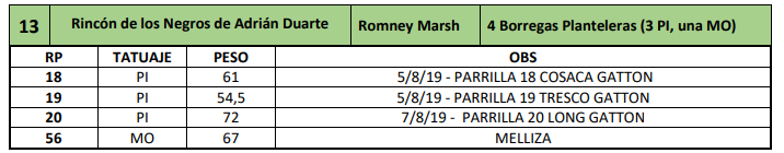 LOTE 13, 4 Borregas Planteleras (3 PI, una MO)