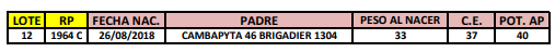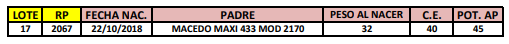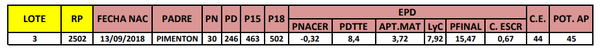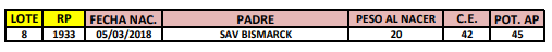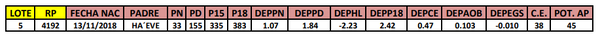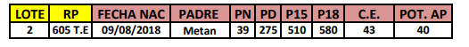 Info Genética (9304) PADRE NJW 73S W18 HOMETOWN 10Y ET NACIMIENTO 10/8/2018 PRECIO BASE 0.00 IMAGEN Jn96duNOIhB2qDkA.png Info Genética (9392) PADRE NJW 79Z Z311 ENDURE 173D ET NACIMIENTO 5/9/2018 PRECIO BASE 0.00 IMAGEN NM6IujfEucd7WEZK.png -