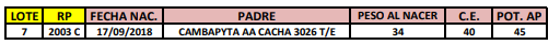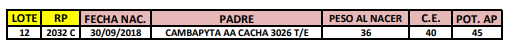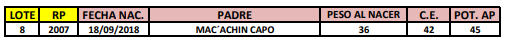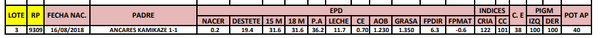 Info Genética (9360) PADRE ANCARES KAMIKAZE 1-1 NACIMIENTO 30/8/2018 PRECIO BASE 0.00 IMAGEN 0michUko1nBAEnvd.png Info Genética (9450) PADRE SANTA INES 9302 POR SUERTE NACIMIENTO 17/9/2018 PRECIO BASE 0.00 IMAGEN hDnvJ2i6YuiZJ8Ff.png Info Genética (9508) PADRE TORDO ST INES G BIFE 7564 NACIMIENTO 30/9/2018 PRECIO BASE 0.00 IMAGEN gKAdz6oOYwKTWOh6.png -