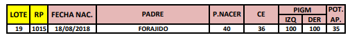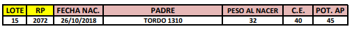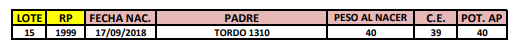 Info Genética (2044) PADRE TORDO 1310 NACIMIENTO 5/10/2018 PRECIO BASE 0.00 IMAGEN w3xGQGrePdXiE4Ax.png Info Genética (2050) PADRE TORDO 1310 NACIMIENTO 10/10/2018 PRECIO BASE 0.00 IMAGEN uU3GdhxE7NXNoebi.png -