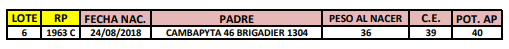 Info Genética (1606) PADRE SD NACIMIENTO 27/10/2018 PRECIO BASE 0.00 IMAGEN UrYoQzBGyXIoQuNv.png Info Genética (647) PADRE IBIRAPITA NACIMIENTO 27/8/2018 PRECIO BASE 0.00 IMAGEN JTrGBpjA66EA0avk.png Info Genética (695) PADRE LT 236 NACIMIENTO 13/10/2018 PRECIO BASE 0.00 IMAGEN SYtOJnQDiKlFgrSc.png -