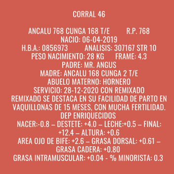 Lote 46 VAQUILLONAS DE PEDIGREE PREÑADAS(Corral 46)