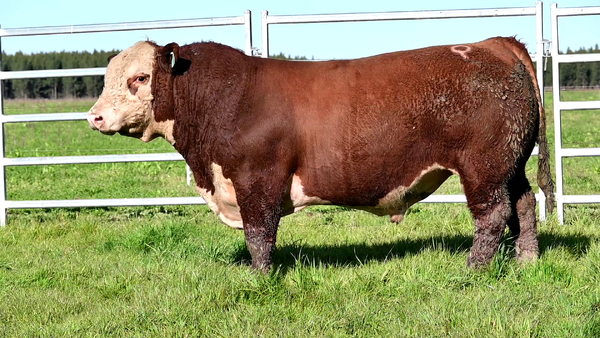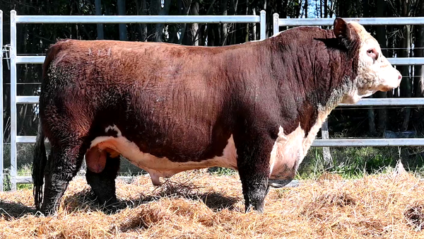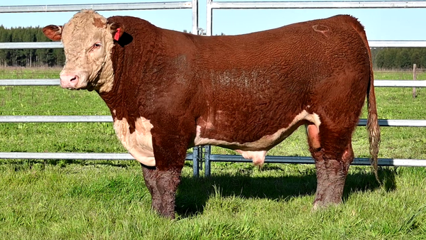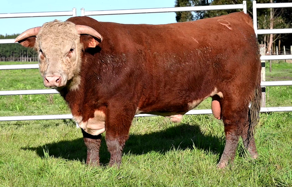 - OBSERVACIONES Clase Hereford! Largo, ancho, pesado, pero en una estructura muy equilibrada, con frente suave y cabeza chica. Un toro para hacer toros, o también terneros y novillos pesados.