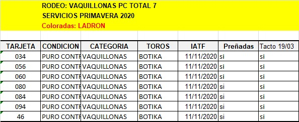 | Observaciones | Preñadas con IATF con BOTIJA (SCOTCH x INSIDE) de bajo peso al nacer. Parición 18/8/2021. |