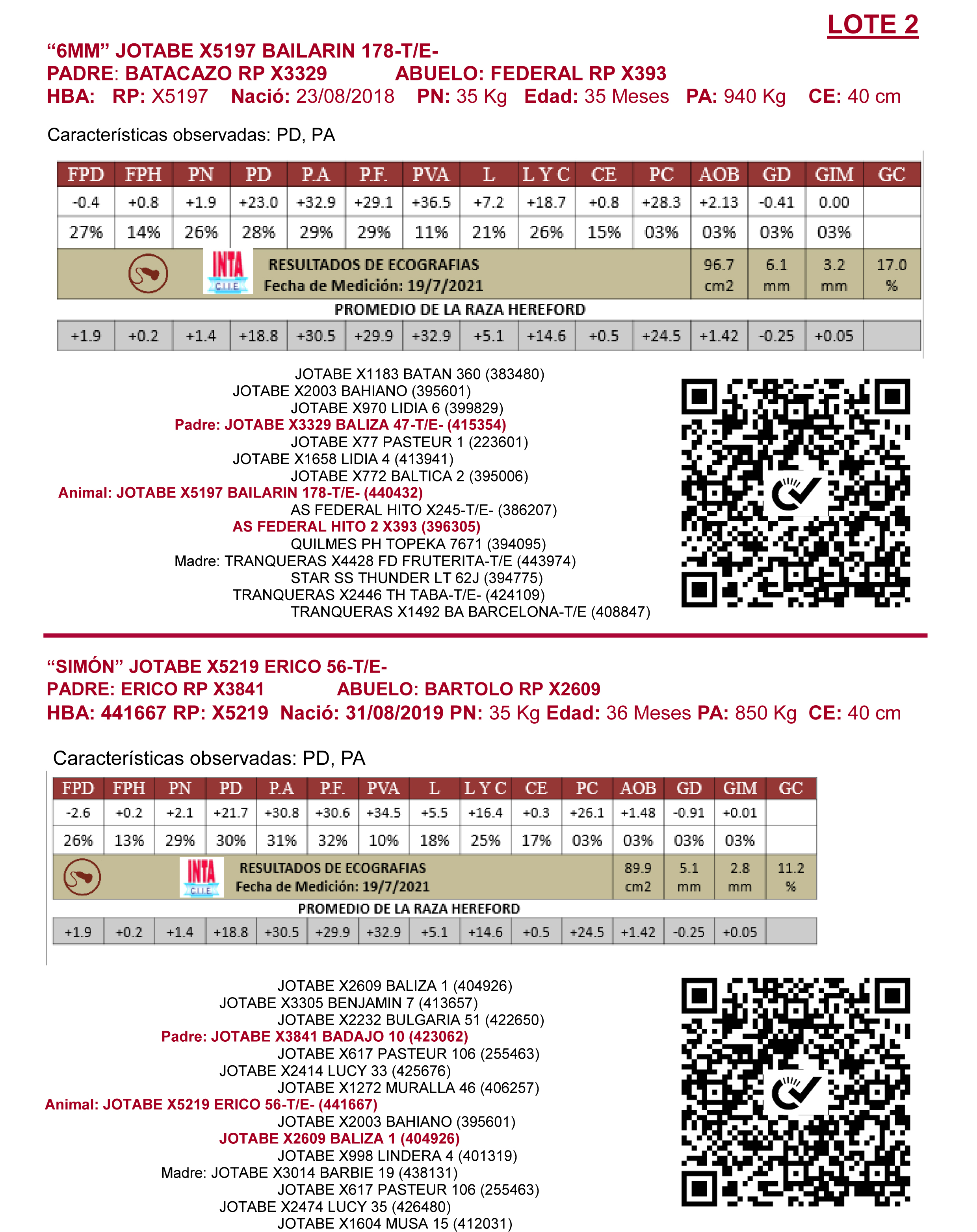 LOTE 2, TORO PURO DE PEDIGREE (Corral 2) 🔥 🔥 🔥 Lote Anterior Volver al remate Lote Siguiente Información del Lote Animales del Lote Pedigree Ofertar Contacto Buenos Aires - Información del Lote Identificador: #125076 Cantidad 2 Categoría Toros PP Raza Hereford Departamento Buenos Aires Plazo Consultar Buenos Aires - Ofertar Fecha de cierre: 02 de Septiembre a las 12:05hs. Prórroga: 5 minutos Aún no tiene ofertas Animales: 5197 5219 Plazo: Contado 30 días 45 días 60 días 90 días 120 días 180 días Contado, 30 y 60 dias Su Oferta en $: − + Step: -10.000,00 / +10.000,00 Programar puja hasta: Programar puja hasta Aumentar puja programada 370000 550000 **Oferta al bulto Iniciar sesión para ofertar Ofertar Compra por $ 99.000.000,00 Ofertas Recibidas $ Fecha/Hora Estado Este lote aún no tiene preofertas. ¿Estás seguro de comprar el LOTE TORO PURO DE PEDIGREE (Corral 2) por $ 99000000 ? 174 Visualizaciones ClicData Animales del Lote RP 5197 5219 PRECIO BASE 0.00 0.00 RP 5197 PRECIO BASE 0.00 RP 5219 PRECIO BASE 0.00 Pedigree Contacto Comercial a cargo: Paulo Empresa: Caldenes Agropecuaria Nombre*: E-mail* : Mensaje Por informes y consultas 03382 15 418112 Enviar Registrese gratis Este contenido Exclusivo está disponible sólo para usuarios registrados Ingresar